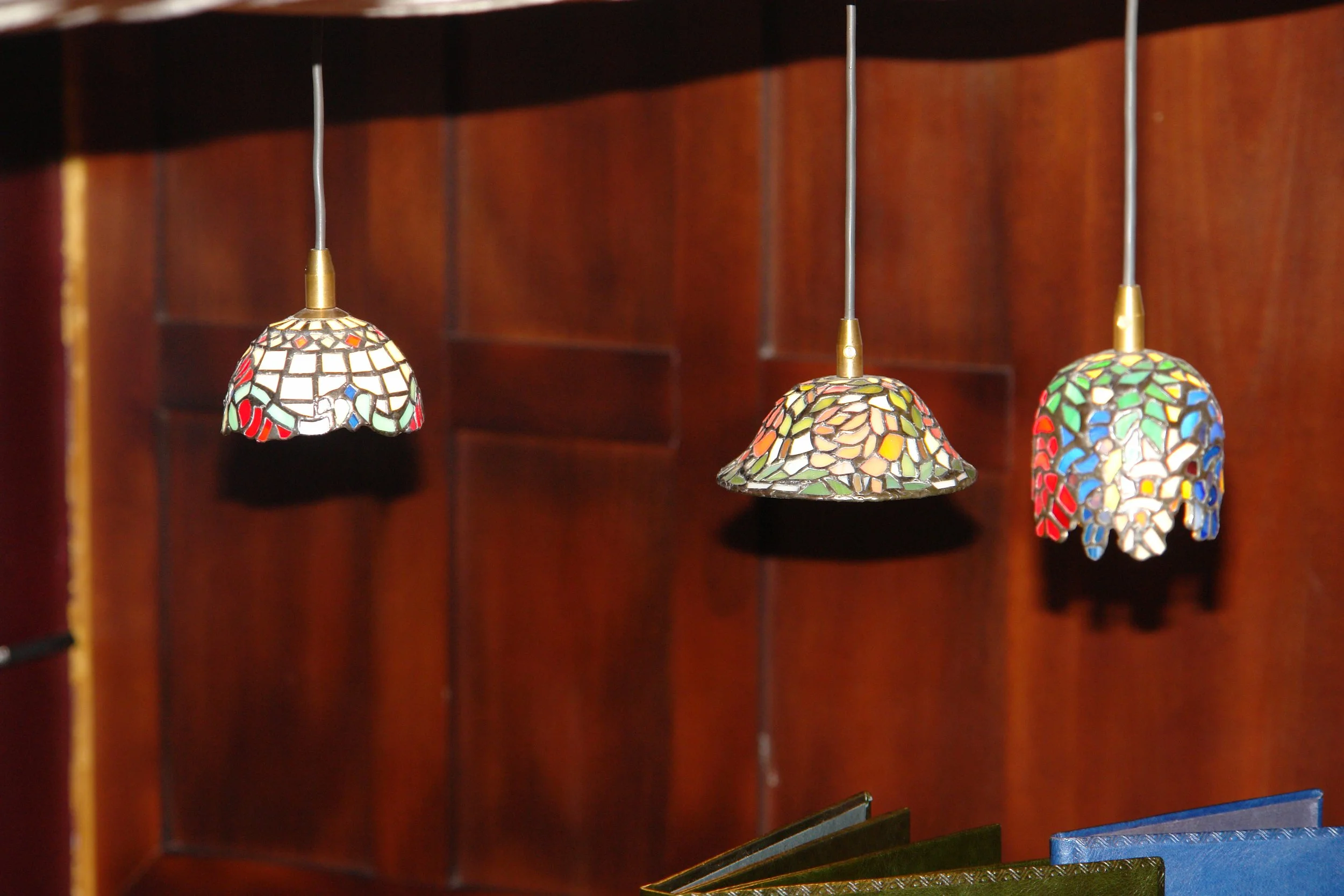 A curated selection of handcrafted stained glass lamps and light fixtures - from intimate table lamps to dramatic pendant chandeliers.