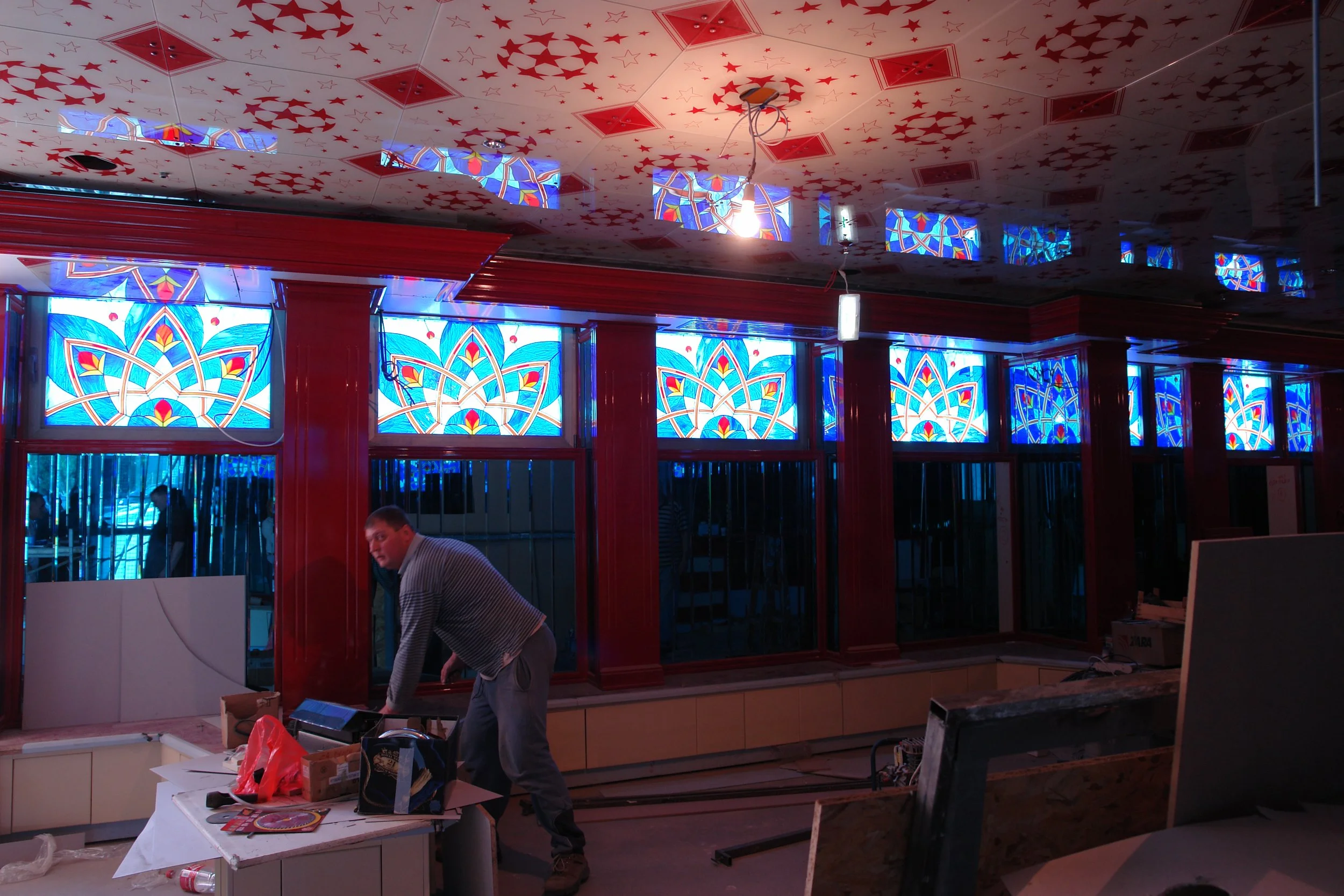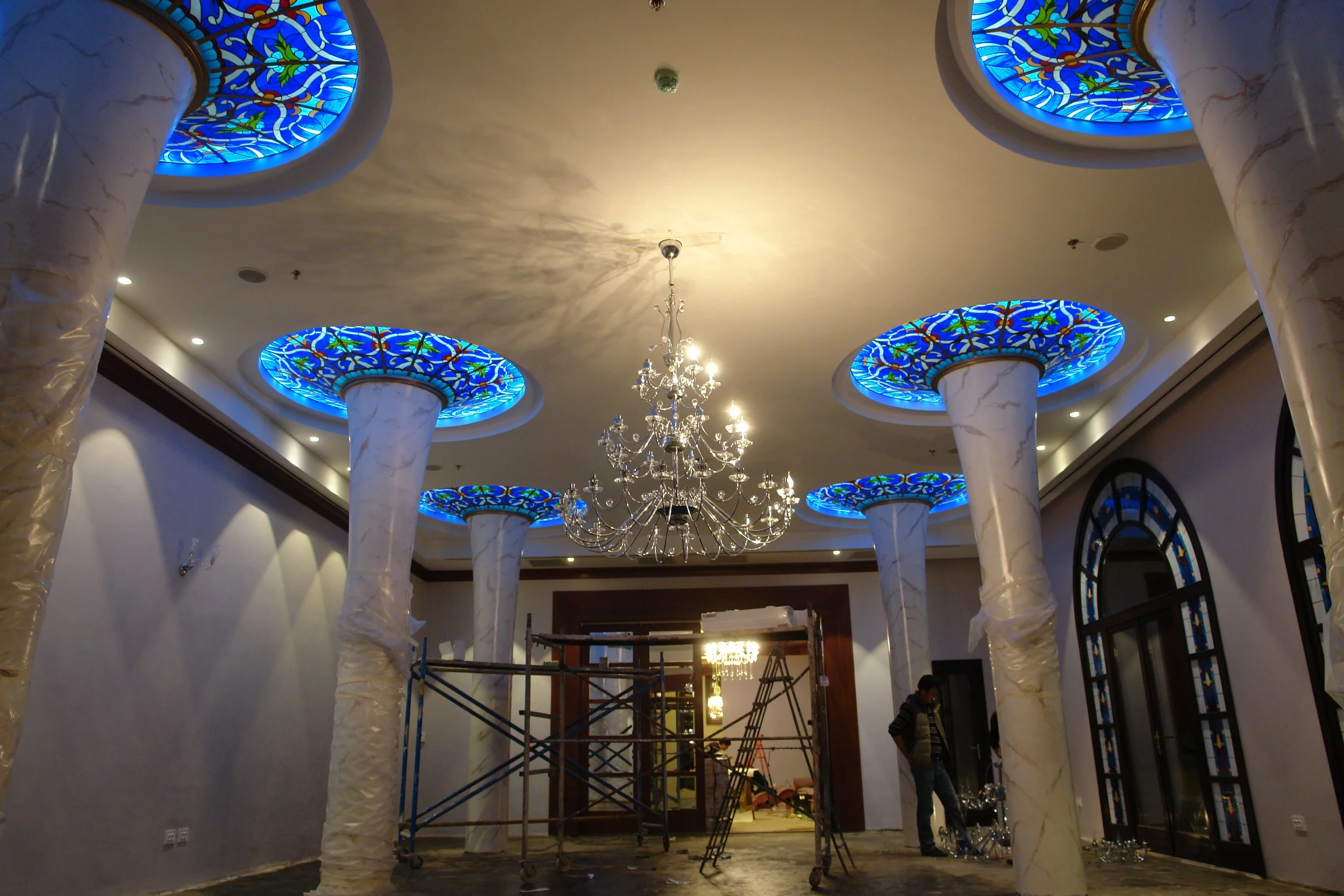 A selection of stained glass commissions for hotels and restaurants, demonstrating the studio’s expertise in creating large-scale architectural glass for hospitality environments. Each project is tailored to the unique character of the space and client vision.