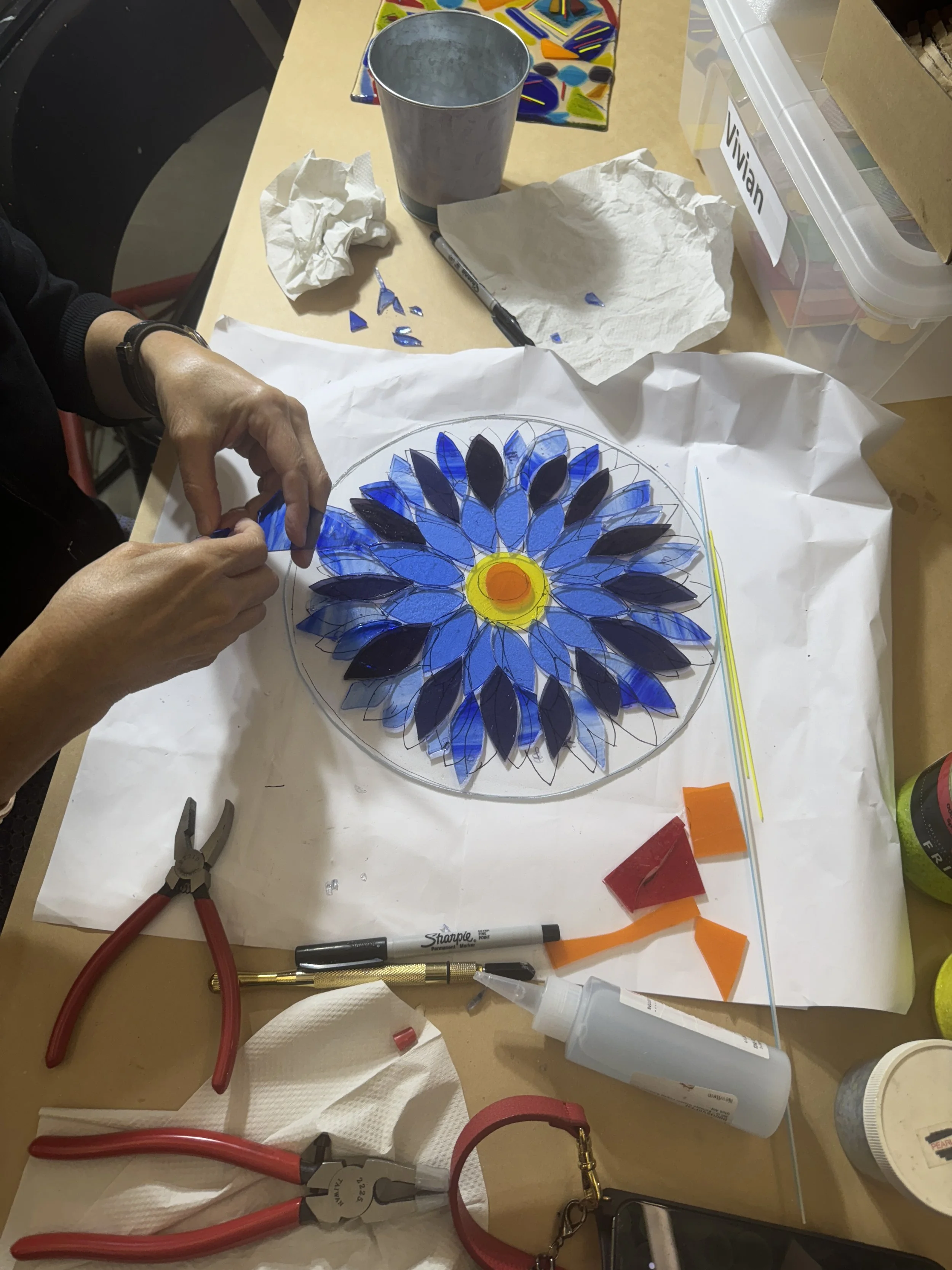 An immersive introduction to the art of fused glass - cutting, layering, and firing glass in a kiln to create one-of-a-kind decorative pieces. Participants explore color, texture, and form through hands- on experimentation, guided by an experienced instructor. No prior experience required.