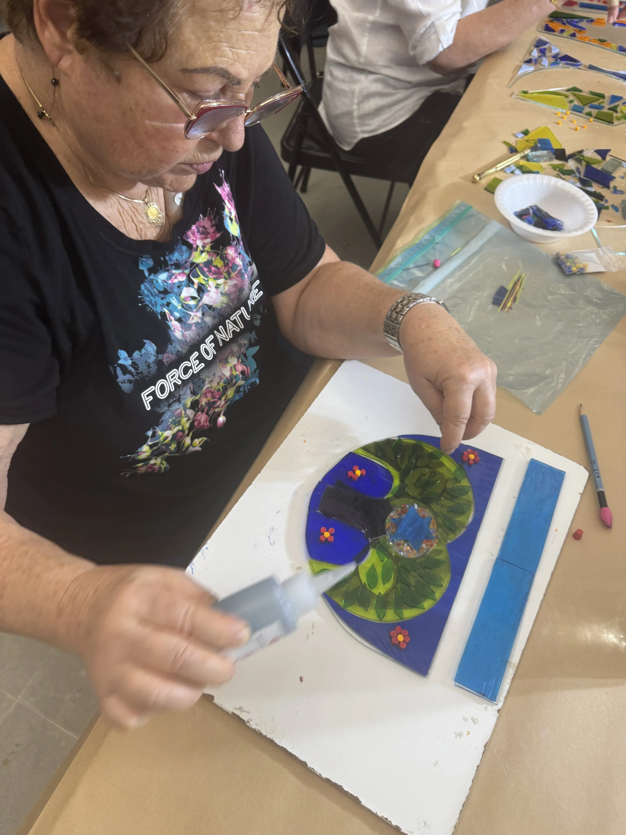 Each workshop is guided by a practicing mosaic artist who adapts the session to the group’s age and energy